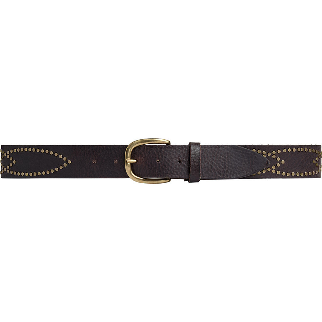Leather jeans belt with studs / 17162 - Dark brown
