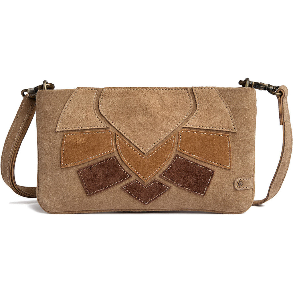 Suede clutch bag with brown patch details / 17098 - Sand