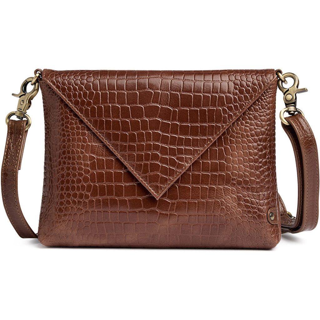 Fashion Favourites croco leather clutch / 17134 - Cognac Croco
