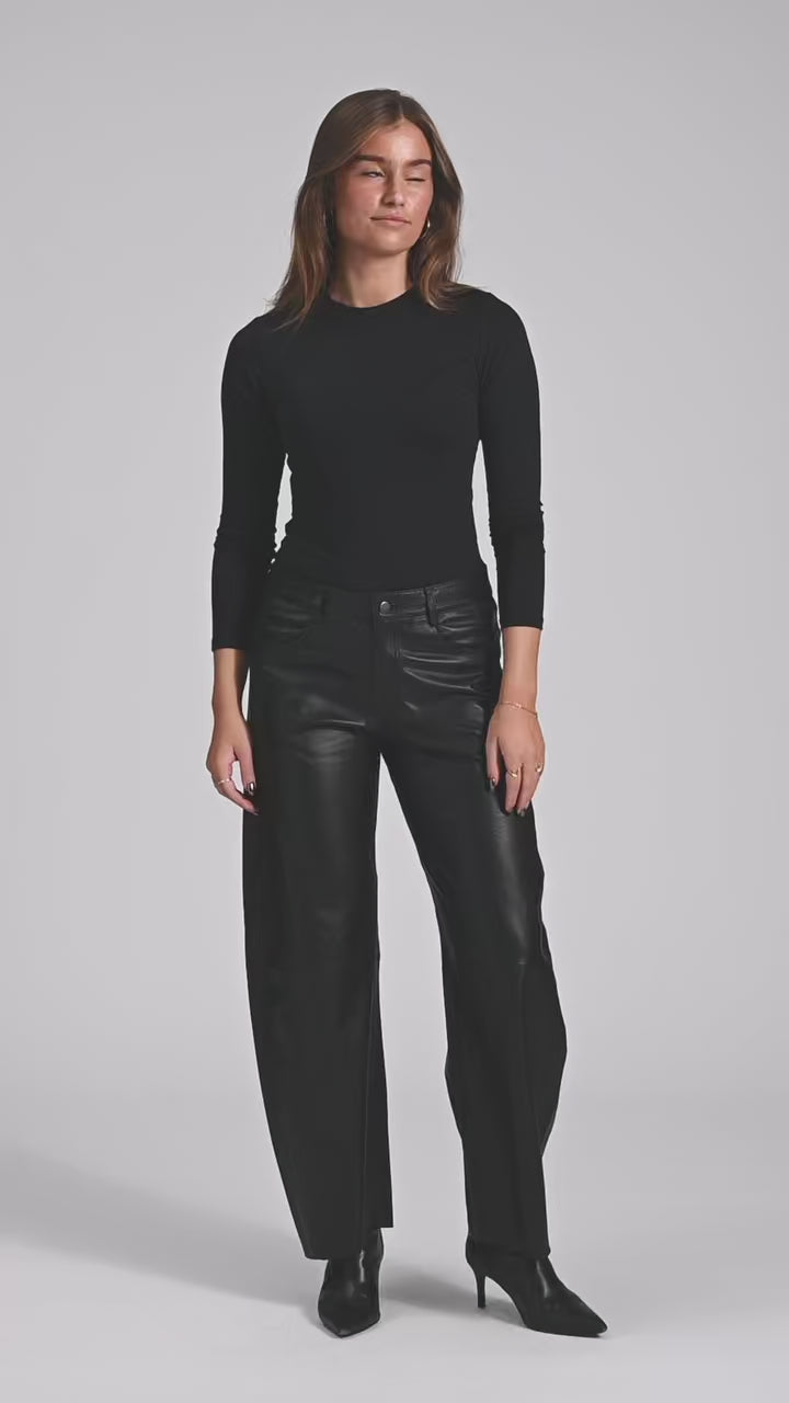 The Boel barrel trousers are one of the season’s hottest trends and a must-have for any wardrobe. Crafted from the softest lamb leather, they offer a luxurious and exclusive look. With their roomy barrel leg, relaxed fit, and full length, these trousers create a cool and modern silhouette that can easily be dressed up or down.