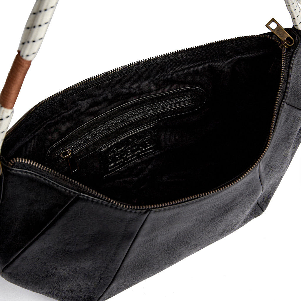 Leather shoulderbag with boho rope strap / 16906 - Black