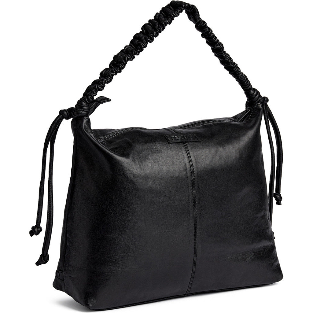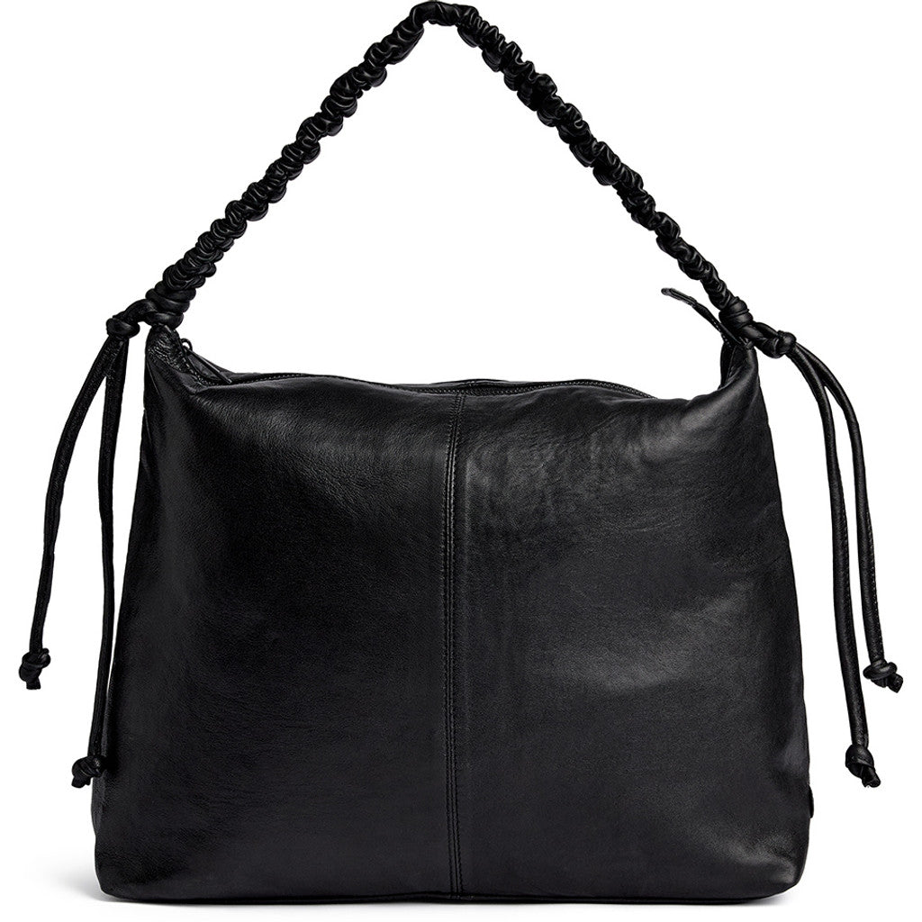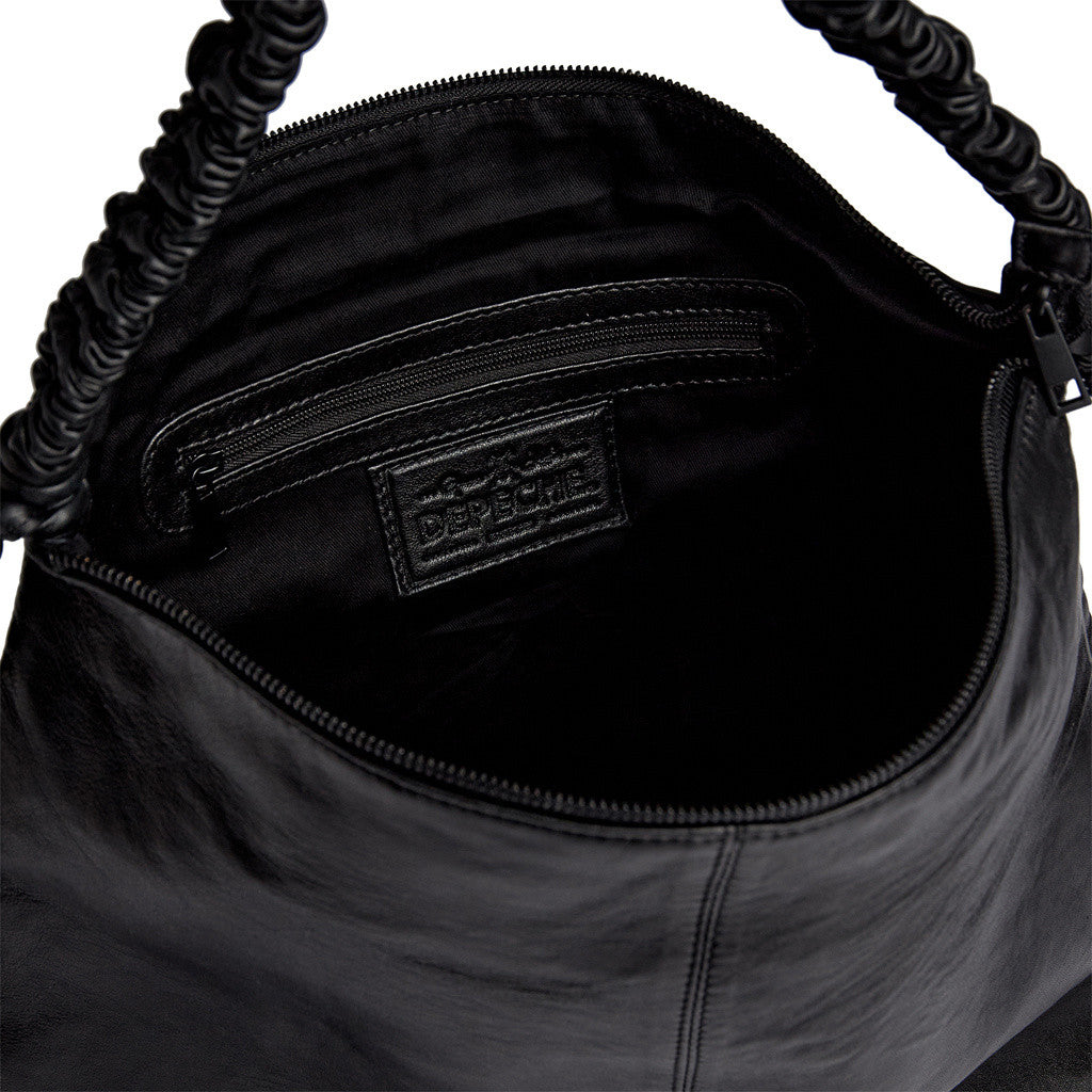 Sheep leather shoulderbag with ruched strap / 17086 - Black