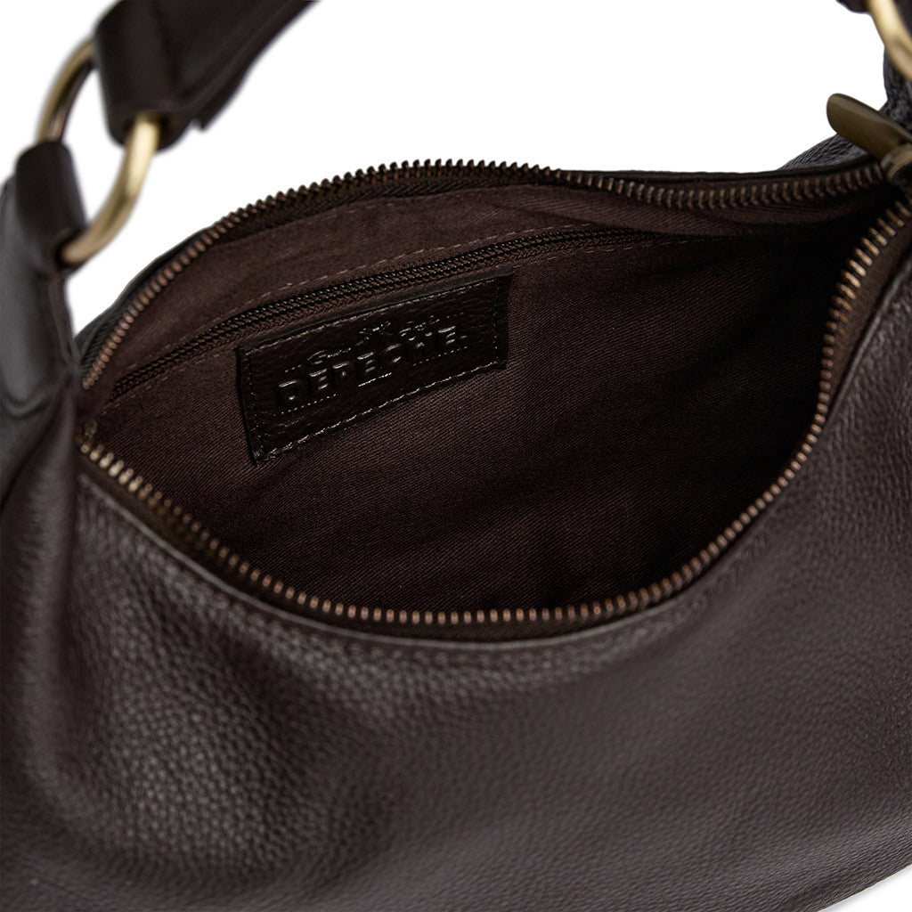 The bag closes with a top zipper, keeping your belongings secure. Inside, it includes a small zip pocket and two open slip pockets, making it easy to organise your essentials such as your phone, keys, and cards.