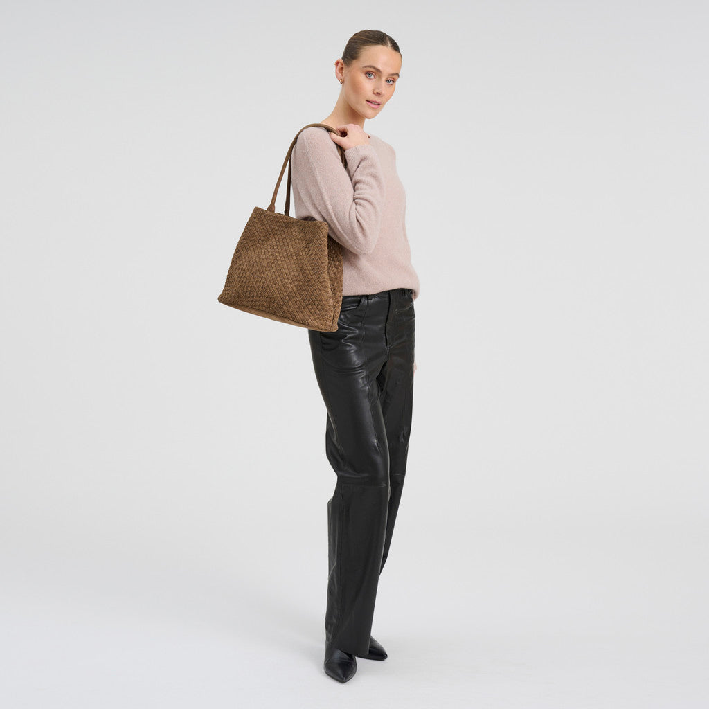 This handbag is a true suede masterpiece - a design where the refined handwoven pattern covers the entire bag, creating an exclusive, soft, and sophisticated expression. Each woven detail is crafted with precision, reflecting the high level of craftsmanship behind the piece. The result is a timeless favourite that feels both luxurious and highly functional for everyday use.