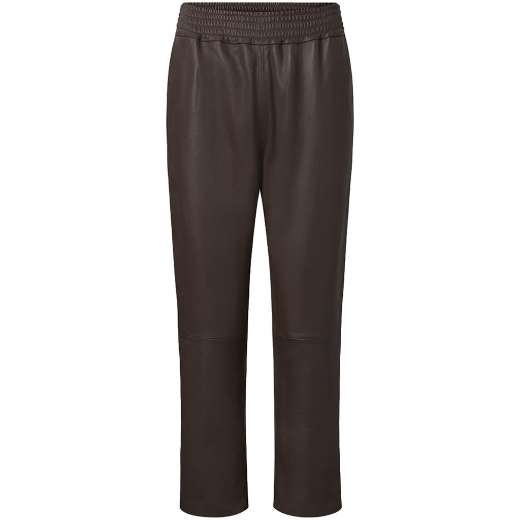 Cool leather baggy pants in a nice soft and delicious quality. The trousers have a simple look, which gives many good styling options. They have a wide elastic edge at the waist, and have sloping pockets on the sides.