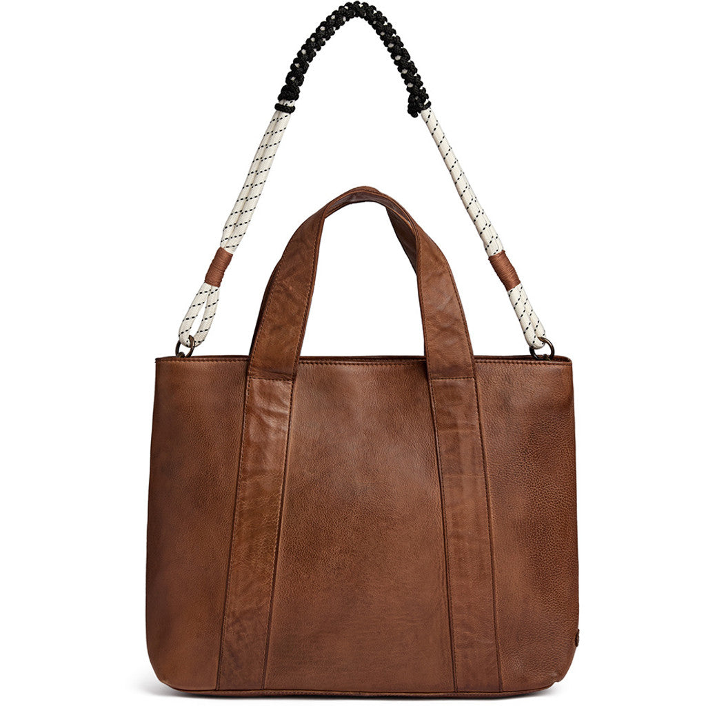 Leather shopper with boho rope strap / 16908 - Dark cognac