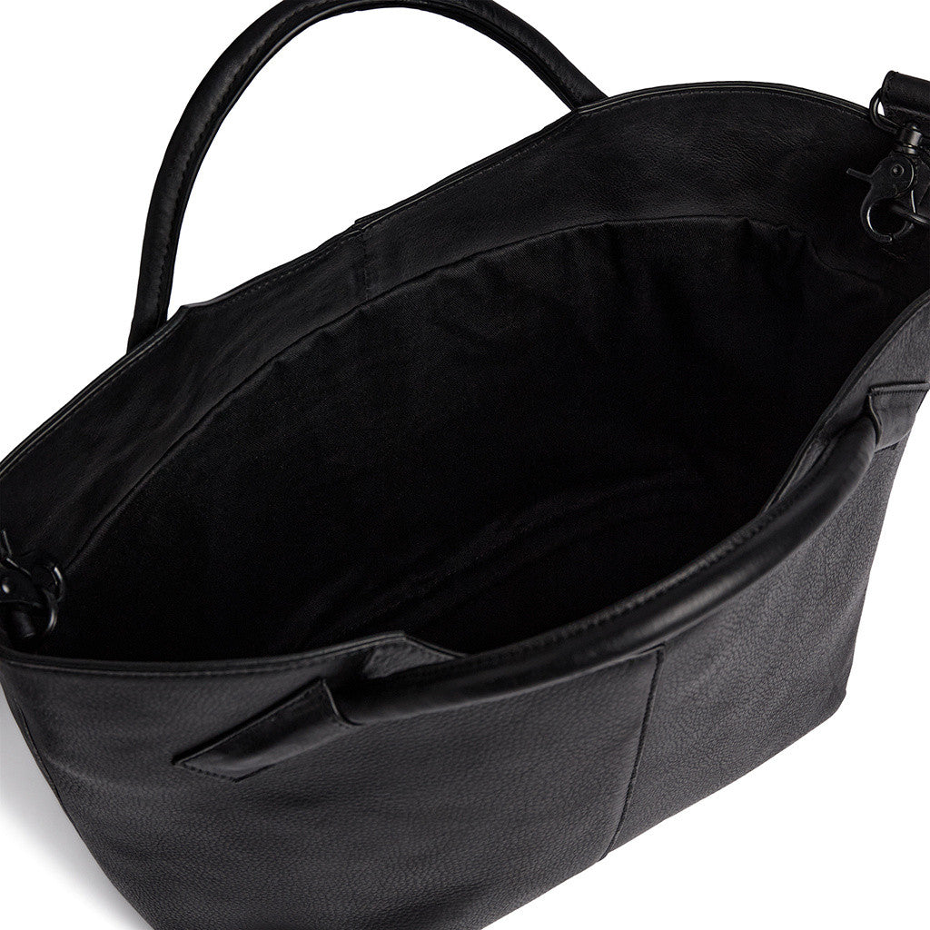 Inside, the shopper includes an additional drawstring closure that adds structure to the bag while keeping your belongings secure. It also closes at the top with a hidden magnetic button, ensuring easy access throughout the day. The interior offers a practical zip pocket for smaller items alongside two open phone pockets for effortless organization.